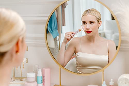 Flawless contour comes with 2 genuine rose Quartz attachment heads: a facial roller and under eye press.