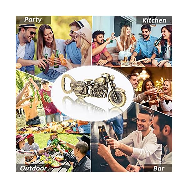 PROFESSIONAL CRAFT – The motorbike bottle opener is made of durable zinc alloy, heavy-duty design with anti-rust coating, smooth surface texture, non-slip handle, humanized solid structure and compact size, offering safe and convenient use. The die-casting process makes the beer bottle opener more durable, which keeps the original bronze color unchanged. Undeformable, this opener will serve you for a long time, helping you easily open the cap.