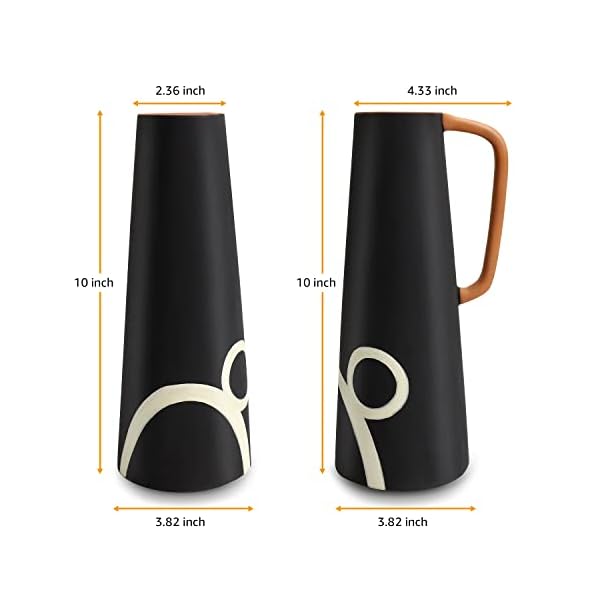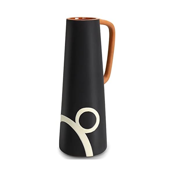 VIHENTHI 10 Inch Black Vase with Handle, Tall Flower Vase with Hand-Painted Pattern, Morden Black Vases Home Decor for…